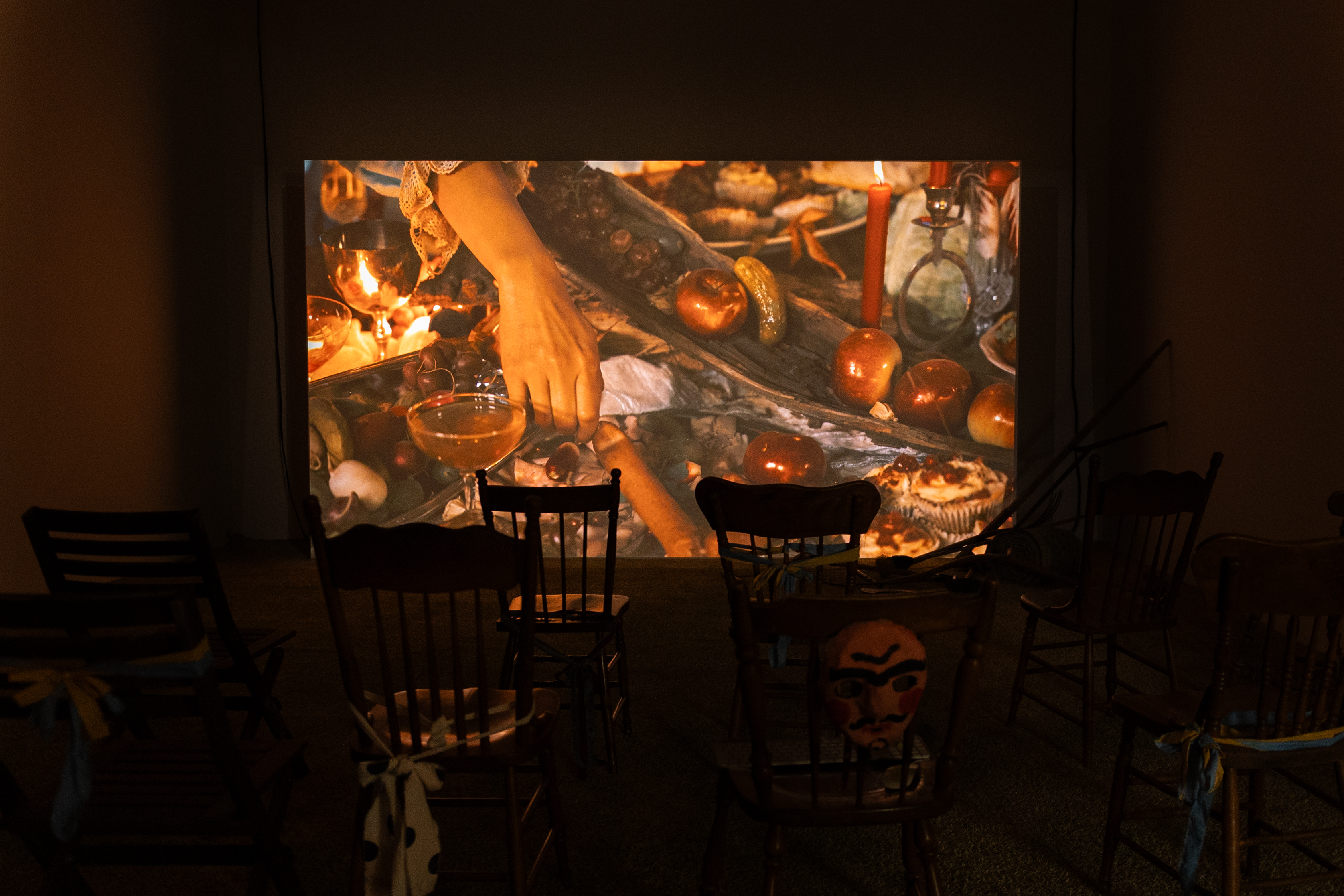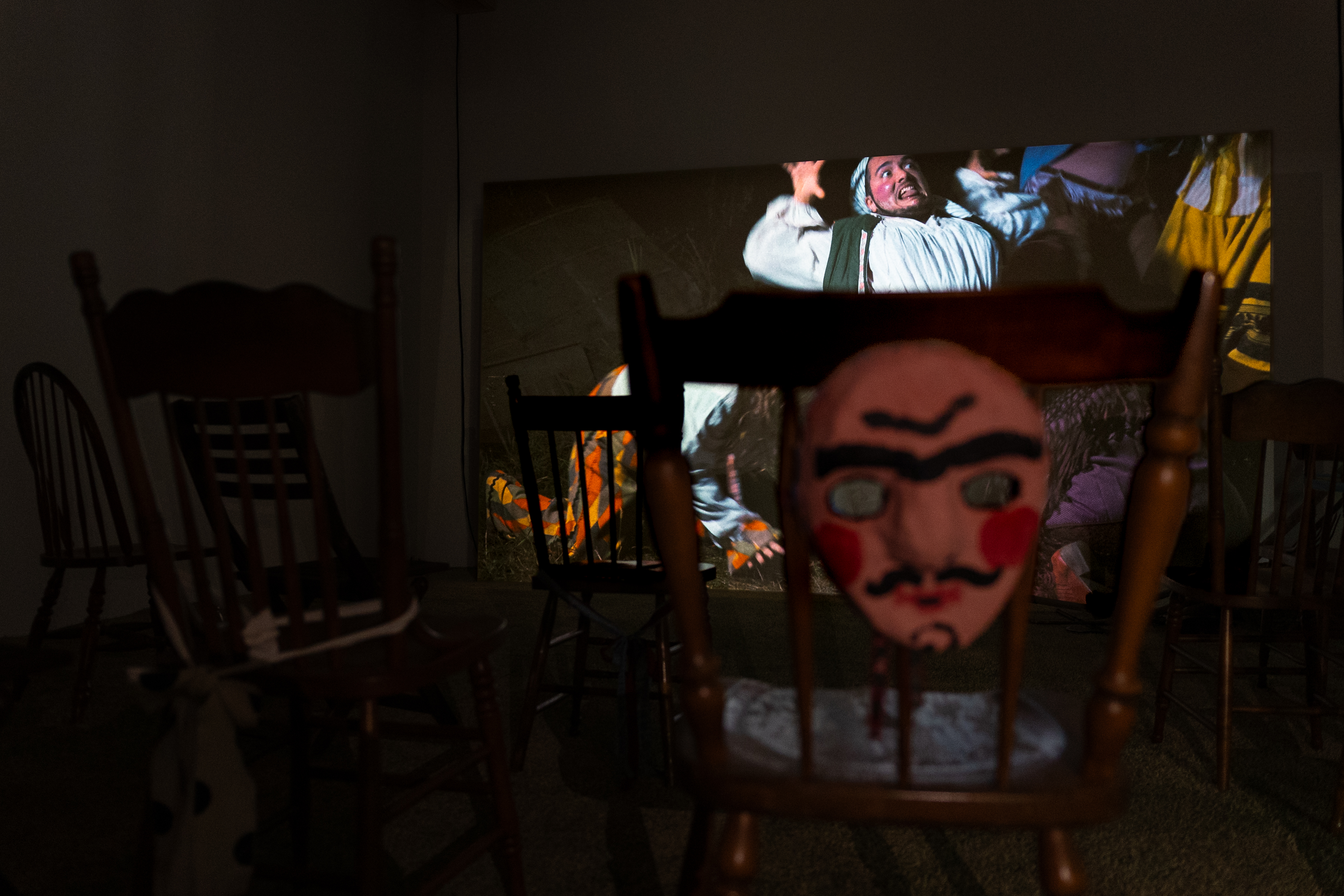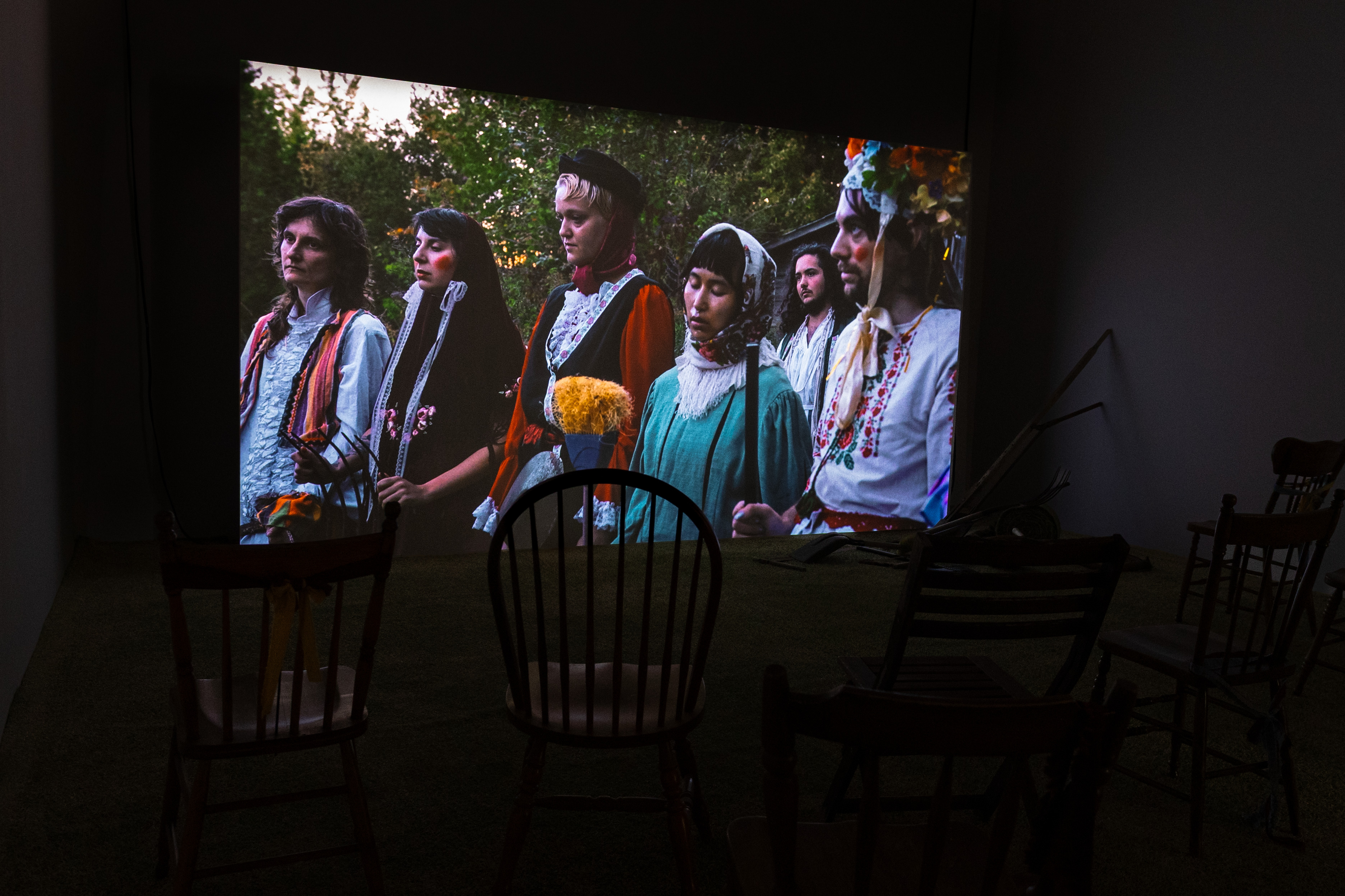 In this video, the artists wink at themselves and their leftist communities for falling into a similar reverse acculturation phenomenon. The piece spins in circles of strange encounters where the obscure contours of the commune’s political aspirations are also being put to test. Opening the gates to hell, Wesele unleashes a catarctic cry-laughter that drags the viewer through a spiral of mistranslations and clowny cultural mutations under which the necessity of community - despite its flaws - remains critical.